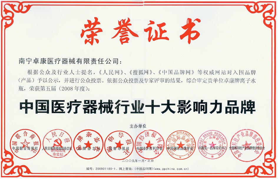 卓康牌離子水瓶榮獲中國企業(yè)名優(yōu)產(chǎn)品[點小圖見大圖]、中國著名品牌稱號[點小圖可見大圖]