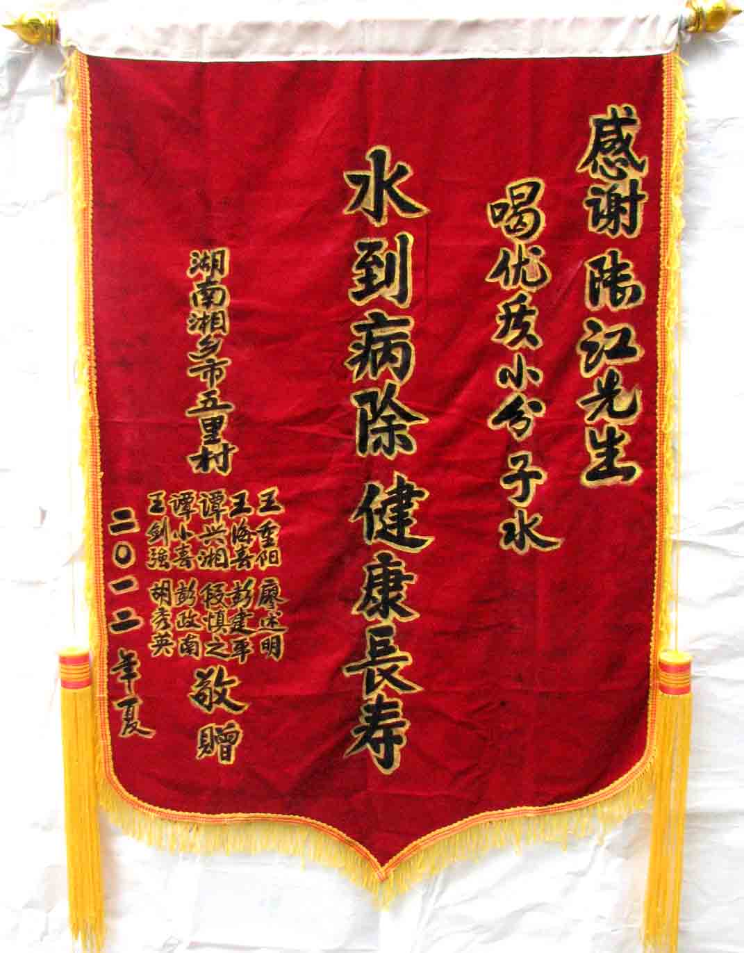 2015年潘志山主動寫一篇感想《我以親身實踐打破了冠心病、高血壓、糖尿病需終生服藥的神話》說:“堅持按發(fā)明人陸?江先生倡導的用‘已饑方食’的方法合理膳食,我的健康狀況越來越好:糖尿病造成的視力下降有了明顯的恢復,末梢神經(jīng)炎導致的指端潰爛現(xiàn)在完全痊愈,痔瘡自從飲用微小分子團水半年后就再也沒有復發(fā)過,氣滯血瘀造成的嘴唇暗紫也漸漸變得紅潤,舌下靜脈黑紫消失,足背的動脈由以前的隱約感到跳動現(xiàn)在變得清晰有力。”[13]潘先生披露的訣竅,一是飲用微小分子團水給脫水細胞補水,二是“已饑方食”養(yǎng)生智慧,患者都能做到。